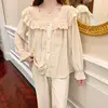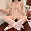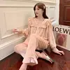 QWEEK pajamas for women Pink White Apricot ruffles Golden velvet pijamas autumn winter sleepwear pyjamas female home clothes