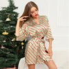 Roseheart Green Luxury Fashion Sleepwear Faux Silk Nightwear Sexy Mini Robes Sashes Bathrobe Pajama Plus Size Christmas Stripe