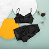 2021 Summer New Black Sling Comfortable Leisure Silk Trousers Two Piece Set Sleepwear Women V Neck Sexy Nightwear