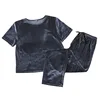 Blue Velvet Women Pajamas 2021 Winter Warm Female Home Suit Sets Ribbon Knitted Loose Short Sleeve Two Piece Ladies Nightwear