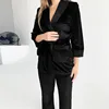 2021 Knitted Winter Velvet Women Pajamas Two Pieces Sets Simple Style Female Cardigan Sleepwear Solid Robe Set Homesuit