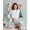 Casual Women Pajamas Print Leisure O-neck Short Sleeve Crop Top And Elastic Waist Shorts Two Piece Cute Sexy Ladies Sleepwear
