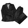 2021 Women Pajamas Set Patchwork Lace Sleepwear Sexy Casual Set Casual Satin Black Luxury Style Long Sleeve Pajama