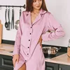 Long Sleeve Sexy Sleep Tops Silk Robes Women Satin Bathrobe Sleepwear Thin Pink Casual Sleepwear Turndown Collar Satin Pajamas