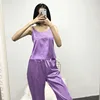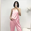 Satin Backless Lace Women Pajamas Spaghetti Strap Intimate Loose Sexy Pajamas With Pants Lingerie Sleepwear Women Pj Set