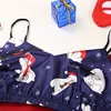 Silk Womens Pajama Sets Two Piece Cartoon Pattern Christmas Ladies Sleepwear Sexy Langerie V Neck Camis Split Shorts Home Suit