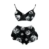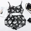 2021 Two Piece Set Sexy Pajamas Casual Print Panda Ladies Sleepwear Satin Summer Silk V Neck Sexy Sling Girls Shorts Pajamas