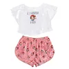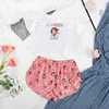 WomenTwo Piece Set Cartoon Print Lovely Sleepwear Short-Sleeved Rround Neck Sexy Short T-shirt Crop Tops Pajamas Home Suit