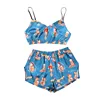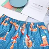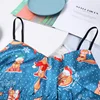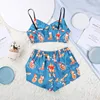 Satin Sexy Fox Print Cartoon Pattern Pajamas Women Sleepwear Satin Two Piece Set Sexy V Neck Split Shorts New Home Suit