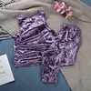 2021 Purple Velvet Women Pajamas Sleeveless Tank Top And Pants Homewear Spring Sexy Sleepwear Two Piece Casual Female Nightwear
