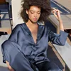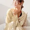 Satin Pajamas Set Women 2 Pieces Spring Sleepwear Smoothing Breathable Ladies Sleepwear 2021 Casual Loose Homewear