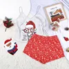 2021 Christmas Satin Women Sleepwear Camel Animal Print Sexy V Neck Top Pijama Sleeveless Shorts Two-piece Ladies Nightwear