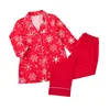 Snow Pattern Cute Pajamas Set Women Print Sleepwear Winter Home Suit Pocket Warm Loungewear Two Piece Sets Female Sleepwear