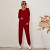 Autumn and winter 2021 new European and American solid color long sleeve loose casual suit home clothes pajamas women