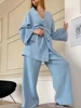 100% Cotton Women's Nightgown Robe Pajama Sets Flare Nightgown Trouser Suits Drop Sleeves Set Woman 2 Pieces Bathrobe For Women