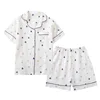 Japanese summer new ladies cotton gauze short sleeve shorts pajamas suit cute heart-shaped thin section home service suit woman