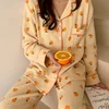 Cotton Home Suits Korean Sleepwear Orange Print Pajamas for Women Autumn Pijama Pyjamas Long Sleeve 2 Piece Set Pjs Dropshipping