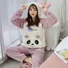 2022 Hat Couple Pajamas Women Flannel Sleepwear Woman Home Service Suits Autumn and Winter Thickened Hooded Nightgown Pajamas