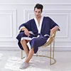 Men's Contrast Color Cotton 3/4 Sleeve Thin Pajamas Home Hotel Hot Spring Bathrobe Pajama Robe Sets