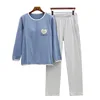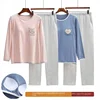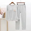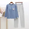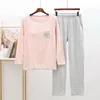 Cotton Home Wear Women's Pajamas Suit Long Sleeved Trousers with Bra Cup One-piece Clothes Simple Comfortable Female Sleepwear