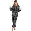 Women's Flannel Dotted Prints Hooded Jumpsuit Pajamas Home Wear womens pajamas lounge wear women sleepwear pyjama set