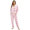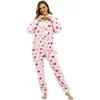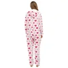 Women's Flannel Pink Love Jumpsuit Pajamas Home Wear women pajamas set women