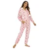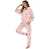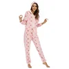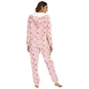 Women's Pink Five-Pointed Star Printed Flannel Hooded Jumpsuit Pajamas Home Wear