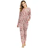 Women's Pink Leopard Flannel Onesie Pajamas Homewear Thermal Clothes onesies for adults women pajamas romper for women