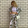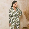 Banana Leaf Print Robe Sets Long Sleeve Satin Pajamas Tropical Graphic 2 Piece Set Women Sleepwear Home Suit Sets Bathrobe 2022