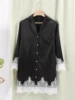 Lace Patchwork Sleepwear Women's Nightgown Robe Night Dress Women Peignoirs Turn Down Collar Satin Nightwear Bathrobe Female
