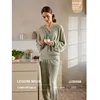 Autumn and winter warm velvet fabric cross V-neck skin friendly home suit fluffy and soft women's pajamas loose closure pants