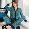 2pcs Women's Pajamas Sets Woman Pajama Summer V Neck Design Suit Long Sleeve Trousers Set Home Clothes Sexy Satin Silk Pijamas