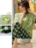 Sleepwear Cartoon Cotton Pajamas for Women Long Pants Short Sleeved Summer Spring Loungewear Fashion Home Clothing Homewear