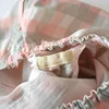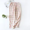 Pink Home Sleep Pants Plaid Couples Cotton Gauze Trousers Green Spring Autumn Nightwear Loose Women Men Thin Home Pajamas