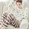 Flannel Warm Pyjamas Winter Coral Fleece Long Sleeve Cartoon Nightie Sleepwear Strawberry Pajamas 2-piece Set Home Tops Pajamas