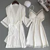 NEW Sexy Women Rayon Kimono Bathrobe WHITE Bride Bridesmaid Wedding Robe Set Lace Trim Sleepwear Casual Home Clothes Nightwear