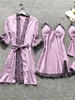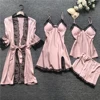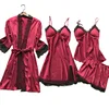 Sets Satin Sleepwear Silk 4 Pieces Nightwear Pyjama Spaghetti Strap Lace Sleep Lounge With Chest Pads silk sleepwear set