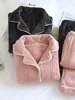 Winter Flannel Couple Clothes Pajama Set Sleepwear Femme Pyjama Long Trouser Ensemble Female Thicken Warm Homewear