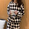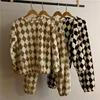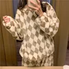Retro Rhombus Coral Velvet round Neck Pajamas Casual Ladies Home Leisure Suit пижама женская теплая pajamas for women