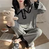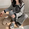 autumn spring sleepwear home suit houndstooth pajama set long sleeve peter pan collar blouse pants home service ruffles D010