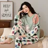 QWEEK Spring Autumn Women's Sleepwear Lounge Pajama Long Sleeved Cartoon Pyjamas Cotton Nightwear Home Suit Pijamas Negligee