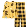 New Pajamas Ladies Long Sleeves Cotton Spring Autumn Set Korean Version Of Cartoon Cute Loose Autumn Winter Cotton Home Service