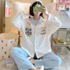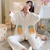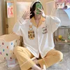 New Spring And Autumn Pajamas Women Cardigan Comfortable Simple Sweet Cute Home Clothing Two-piece Suit Can Be Out