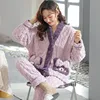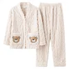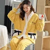 New Autumn Winter Warm Coral Velvet Pajamas Ladies Long Sleeve Loose Thickening Plus Velvet Cartoon Flange Velvet Home Clothes