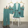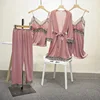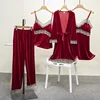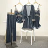 Sexy Pajama Set Lace Golden Velvet New Women 's Home Clothes Nightgown Suspender Four Piece
