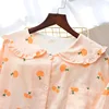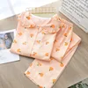 Four seasons Orange Ladies' Pajamas Spring and Autumn Cotton Gauze Home Service Thin Korean version large size Trousers suit