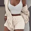 Women Coral Velvet Pajamas Set Spring Autumn Winter Pajamas 3 Three Piece Set Sleepwear Tops Shorts Coat Suit Size S-3XL
