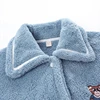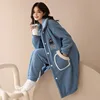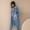 Long Ladies Pajamas Thicken Winter Flannel Blue Long Sleeve Trousers Sleepwear Women's Nightgown 2-piece Set Loungewear