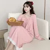 Solid Color Lace Cute Bow Kawaii Nightdress Female Autumn Large Long Sleeve Cotton Pajamas Princess Style Spring Home Clothes