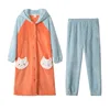 Kawaii Pajamas Sets Women Men Winter Thicken Pyjamas Sleepwear Cartoon Korean Cat Lovers Homewear Soft Warm Pijama